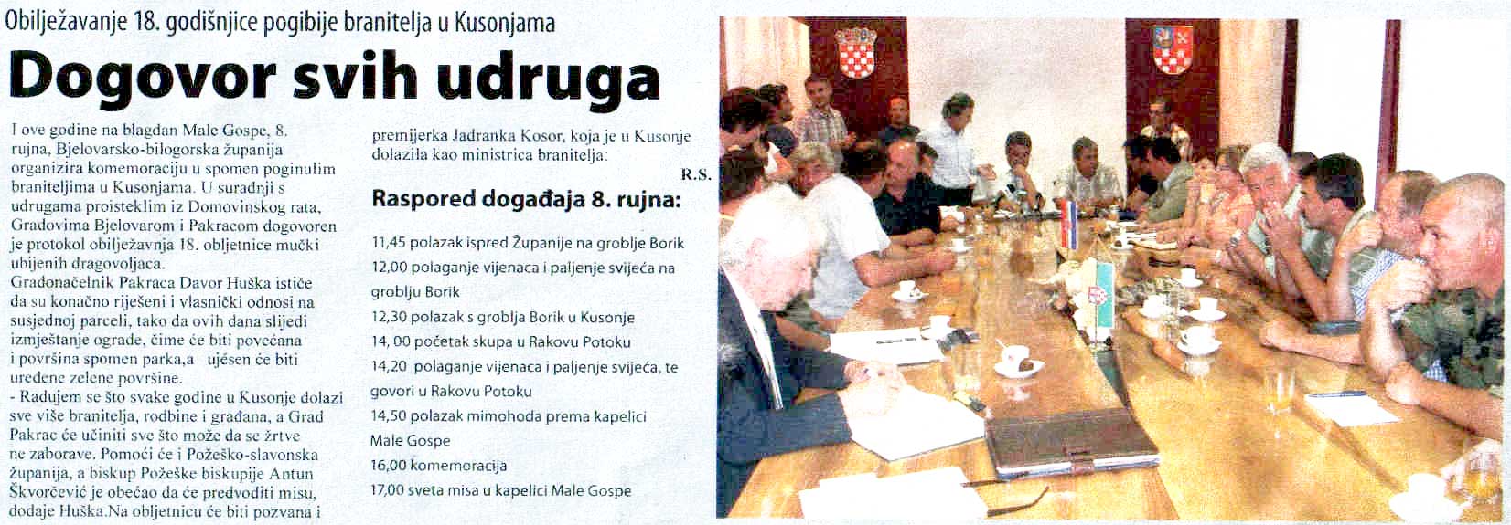 - Radujem se što svake godine u Kusonje dolazi sve više branitelja, rodbine i građana, a Grad Pakrac će učiniti sve što može da se žrtve ne zaborave. Pomoći će i Požeško-slavonska županija, a biskup Požeške biskupije Antun Škvorčević je obećao da će predvoditi misu, dodaje Huška. Na obljetnicu će biti pozvana i premijerka Jadranka Kosor, koja je u Kusonje dolazila kao ministrica branitelja.