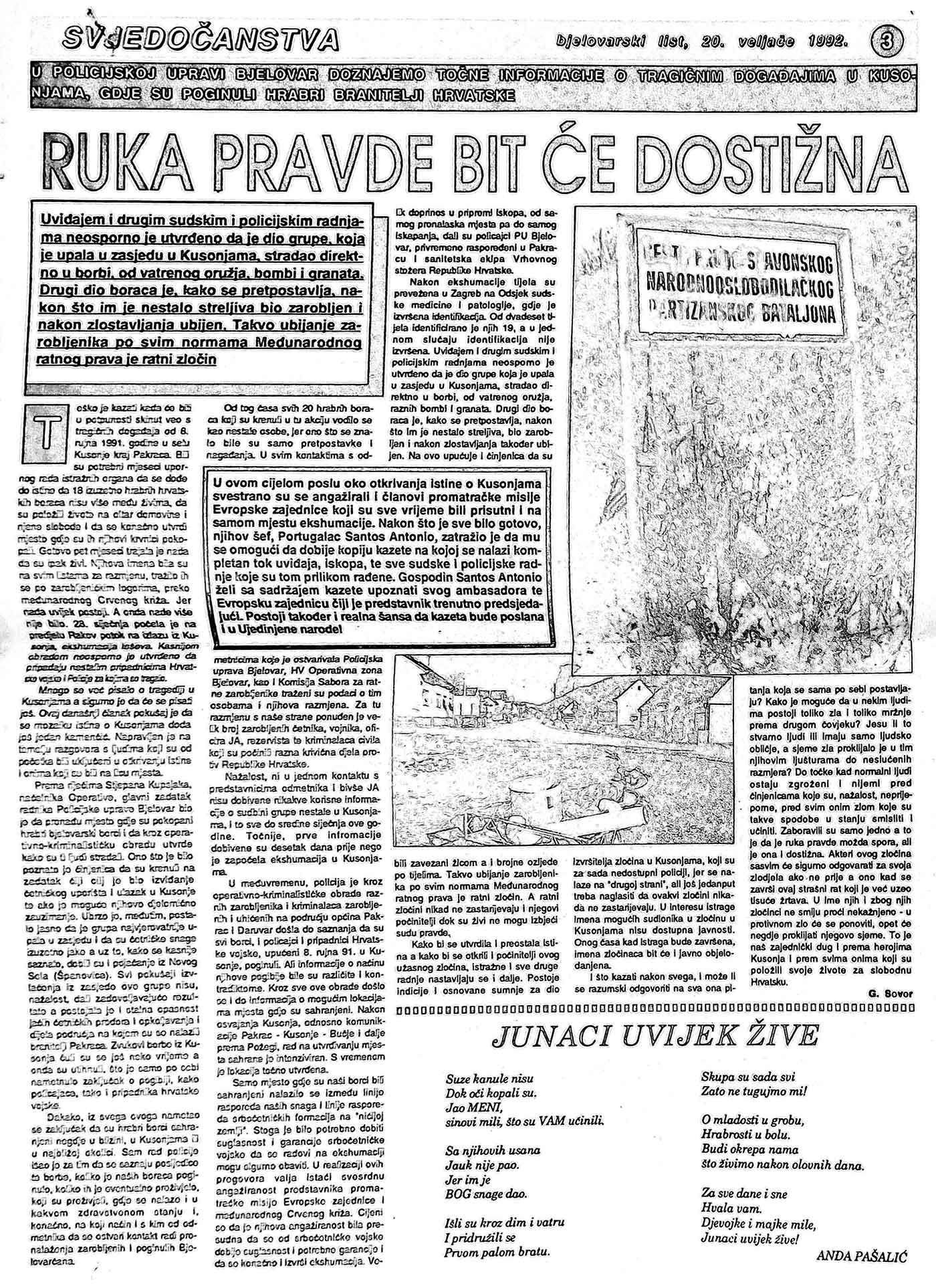 SVJEDOČANSTVA | Bjelovarski list, 20. veljače 1992.